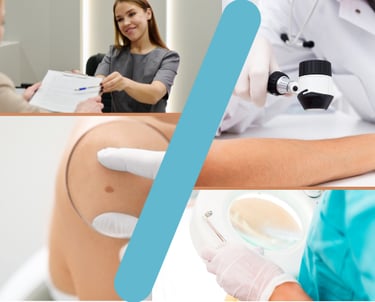 Accettazione: verifica documenti e anamnesi dermatologica, consenso informato.
